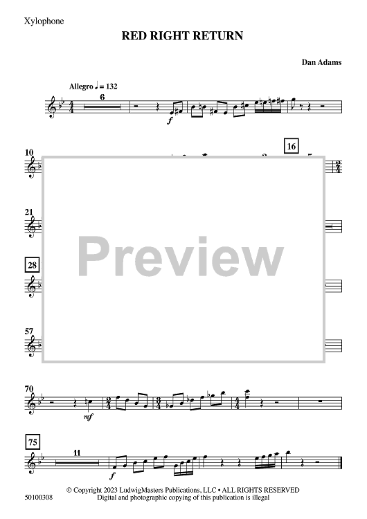 Digital Sheet Music for Red Right Return - Xylophone by Dan Adams scored for Concert Band; id:509299