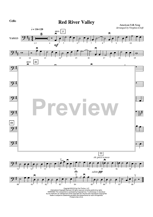 Digital Sheet Music for Red River Valley - Cello by American Folk Song, Virginia Croft scored for String Orchestra; id:431901
