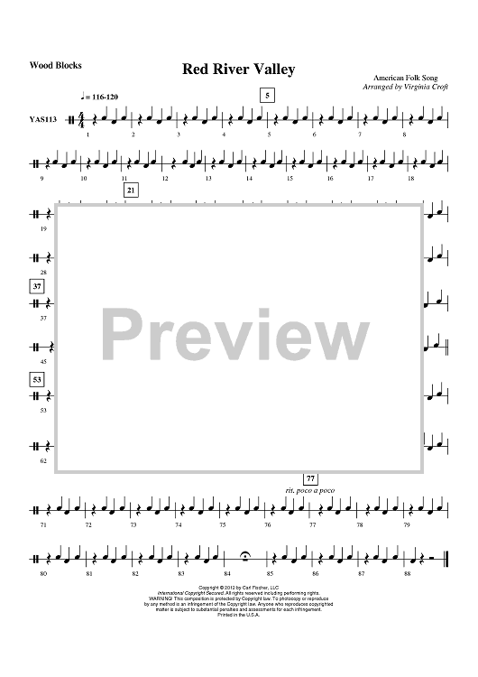 Digital Sheet Music for Red River Valley - Percussion by American Folk Song, Virginia Croft scored for String Orchestra; id:431904