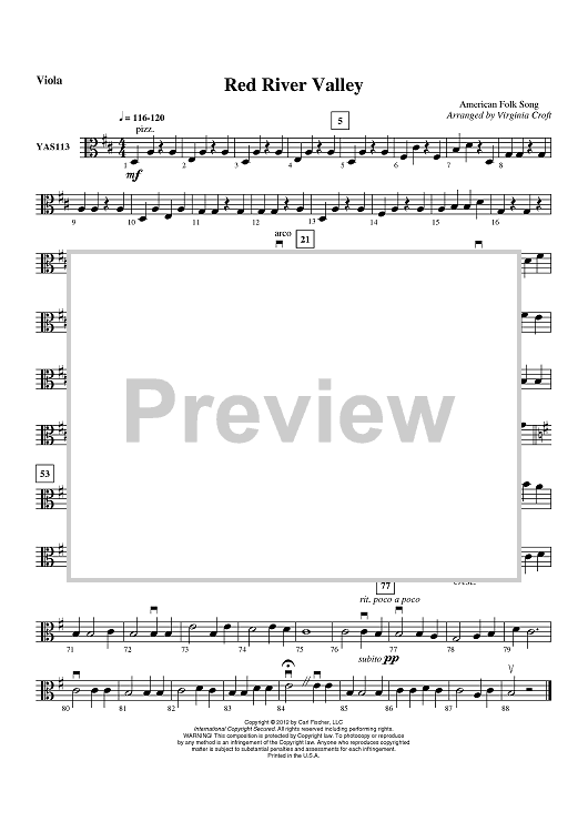 Digital Sheet Music for Red River Valley - Viola by American Folk Song, Virginia Croft scored for String Orchestra; id:431900
