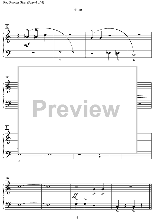 Digital Sheet Music for Red Rooster Strut by Martha Mier scored for 1 Piano, 4 Hands; id:497956
