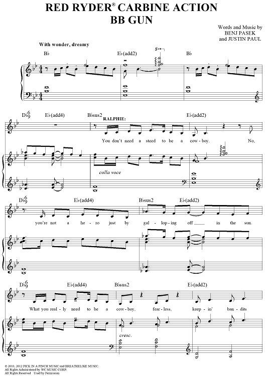 "Red Ryder Carbine Action BB Gun" Sheet Music by Benj Pasek