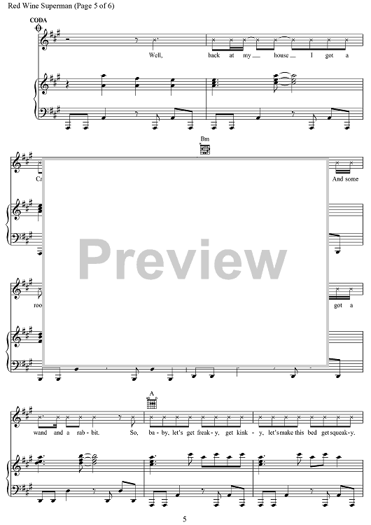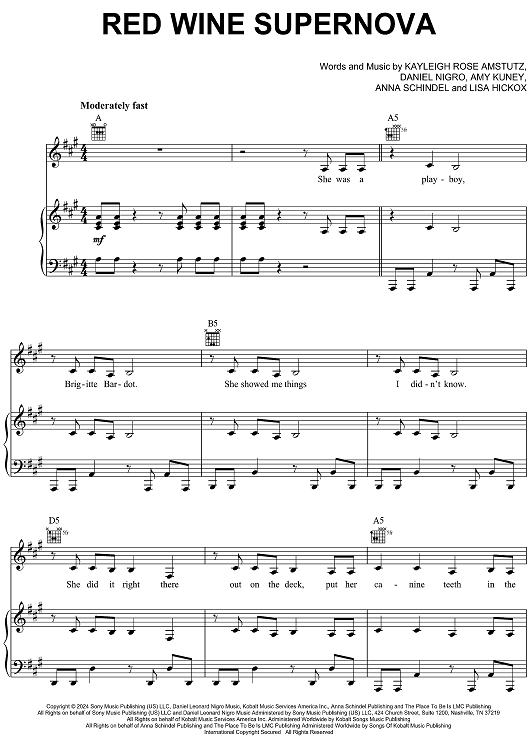 Digital Sheet Music for Red Wine Supernova by Daniel Nigro, Chappell Roan, Amy Kuney, Anna Schindel, Lisa Hickox scored for Piano/Vocal/Chords; id:504799