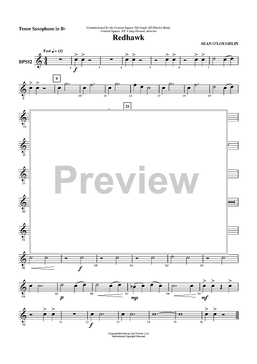 "Redhawk - Tenor Sax" Sheet Music by Sean O'Loughlin