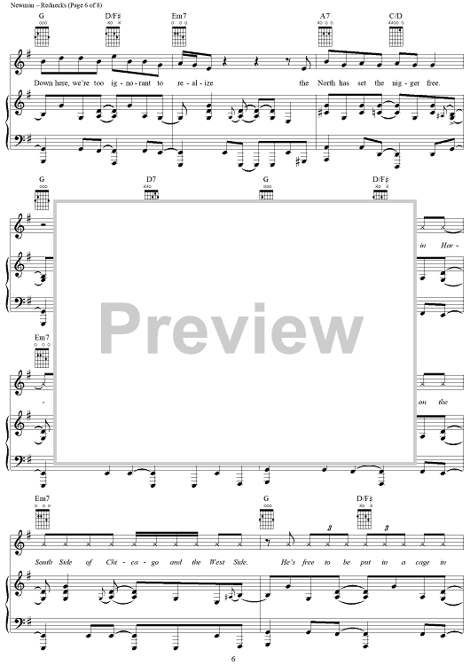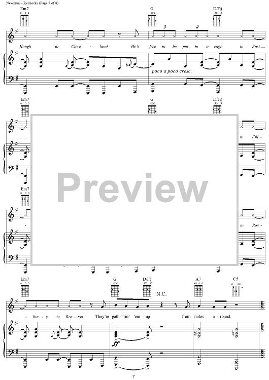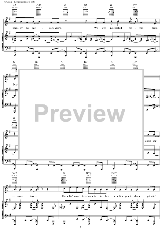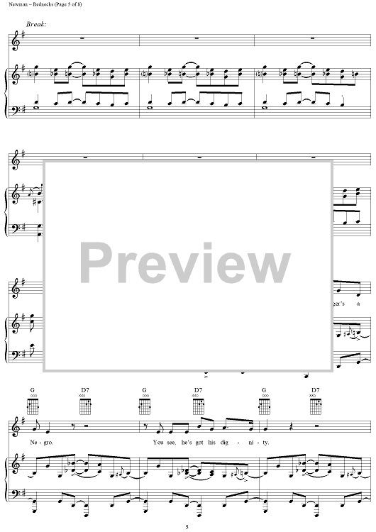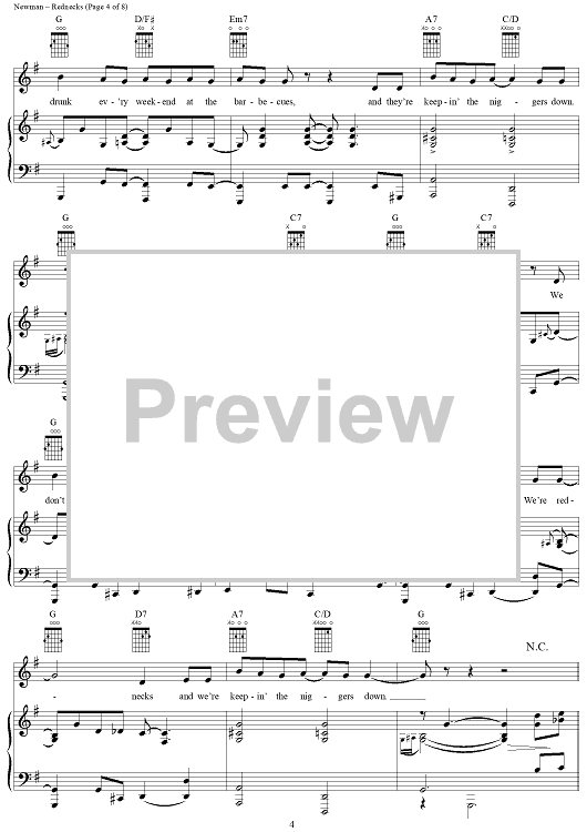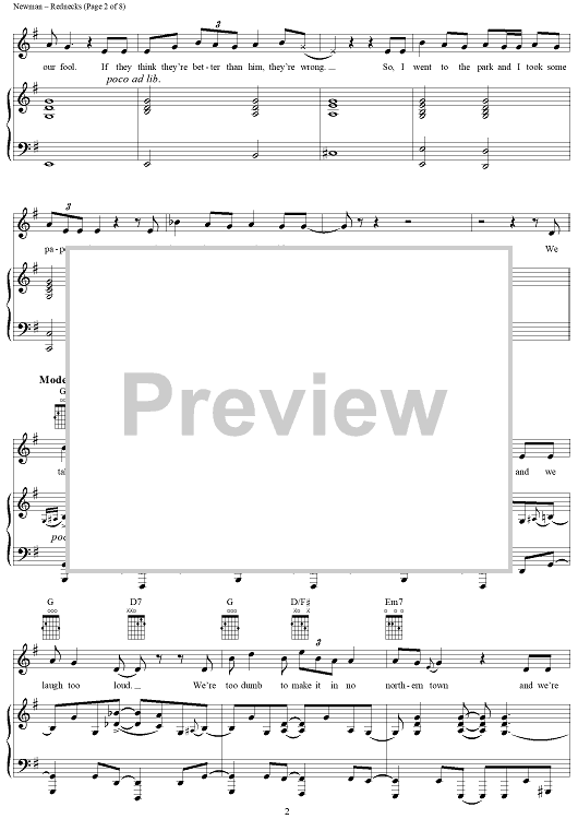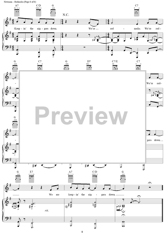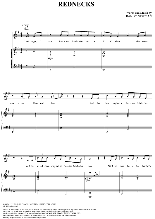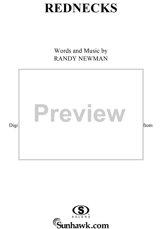 Digital Sheet Music for Rednecks by Randy Newman scored for Piano/Vocal/Chords; id:253411