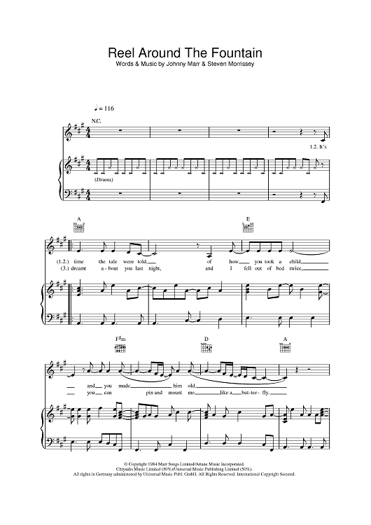 Digital Sheet Music for Reel Around The Fountain by Steven Morrissey, Johnny Marr, The Smiths scored for Piano/Vocal/Chords; id:398775