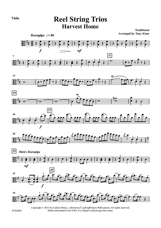 Digital Sheet Music for Reel String Trios - Viola by Various, Tony Kime scored for String Trio; id:461209