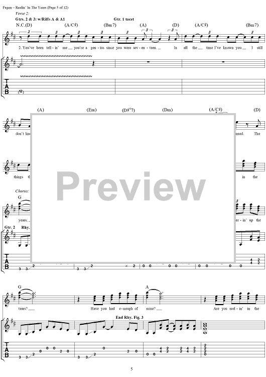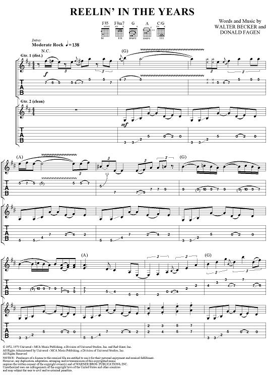 "Reelin' In The Years" Sheet Music by Steely Dan