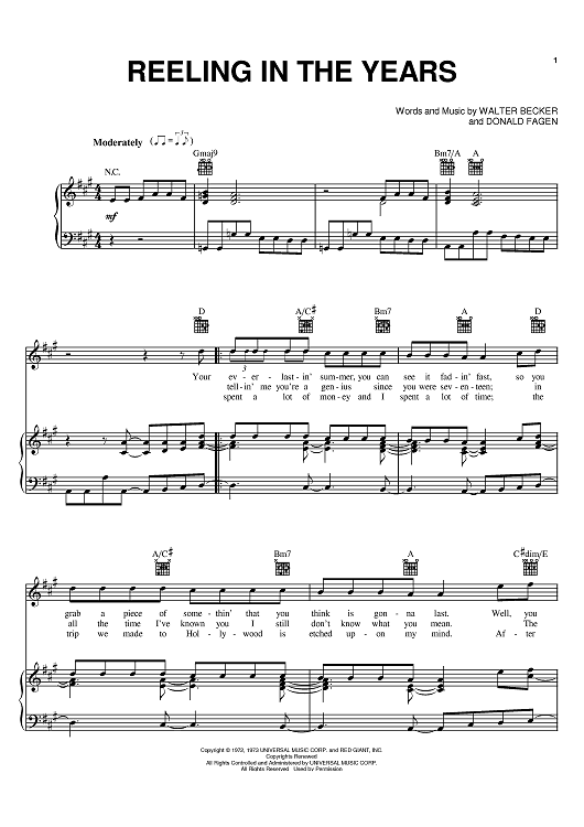 Digital Sheet Music for Reeling In The Years by Steely Dan, Donald Fagen, Walter Becker scored for Piano/Vocal/Chords; id:383720