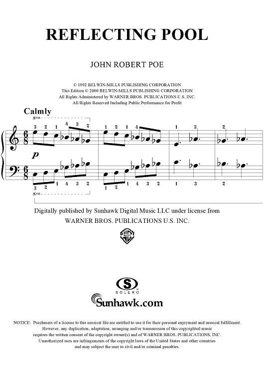 Digital Sheet Music for Reflecting Pool by John Robert Poe scored for Piano Solo; id:285985