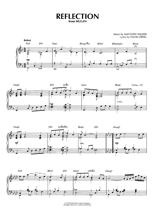 Digital Sheet Music for Reflection - from Mulan by David Zippel, Matthew Wilder, Brent Edstrom scored for Piano Solo; id:466206