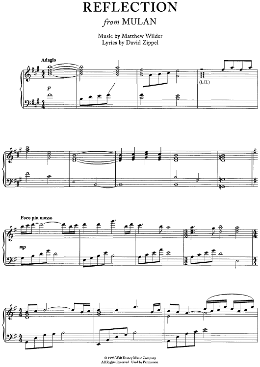 Digital Sheet Music for Reflection - from Mulan by David Zippel, Matthew Wilder scored for Piano Solo; id:468920