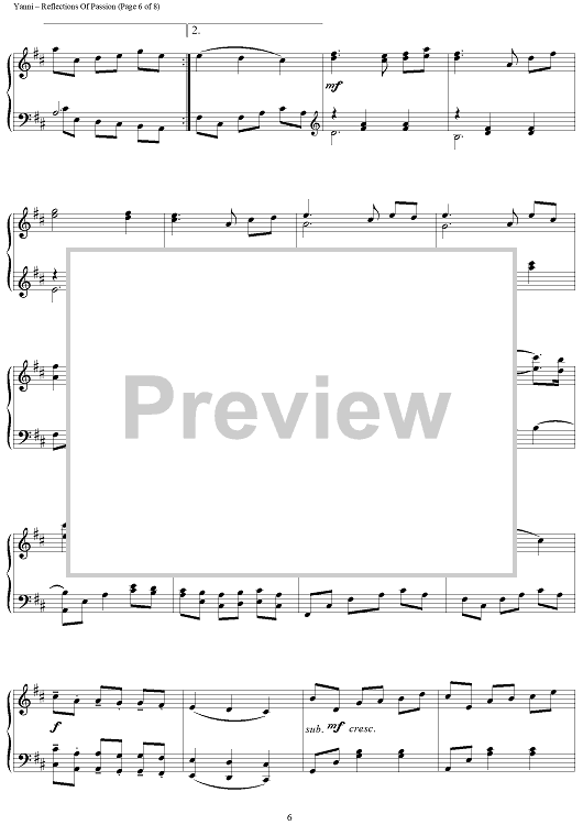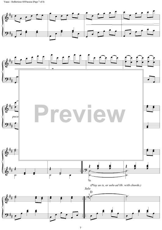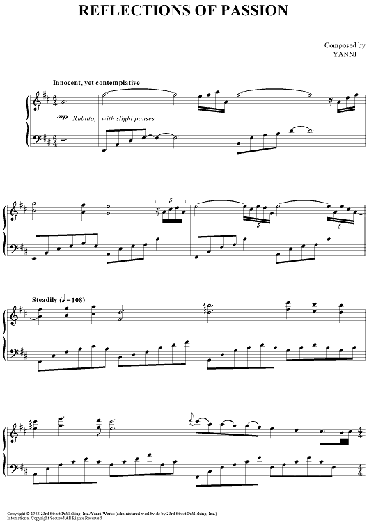 Digital Sheet Music for Reflections of Passion by Yanni scored for Piano Solo; id:447059