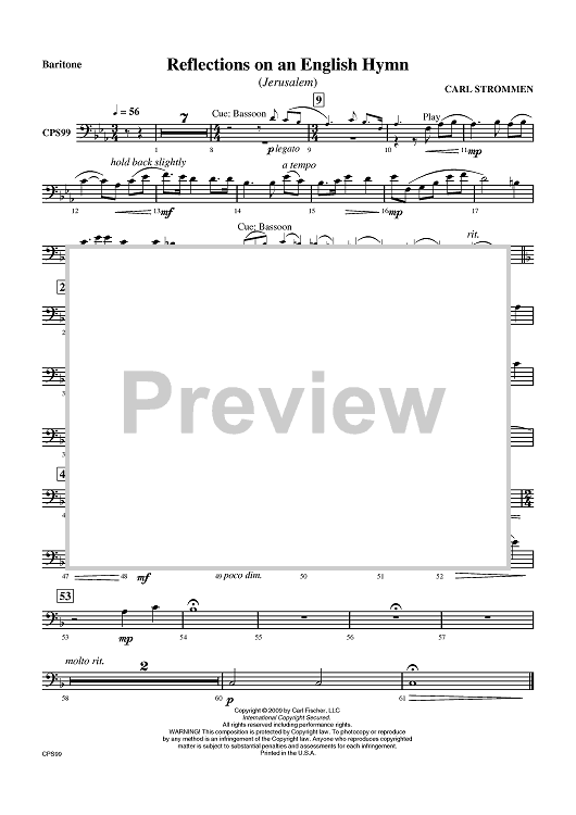 Digital Sheet Music for Reflections on an English Hymn - Baritone (Bass Clef) by Carl Strommen scored for Concert Band; id:405951
