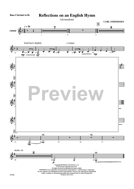 Digital Sheet Music for Reflections on an English Hymn - Bass Clarinet by Carl Strommen scored for Concert Band; id:405937