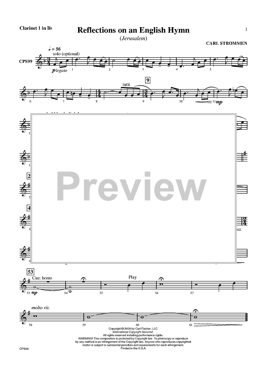 Digital Sheet Music for Reflections on an English Hymn - Clarinet 1 in B-flat by Carl Strommen scored for Concert Band; id:405934