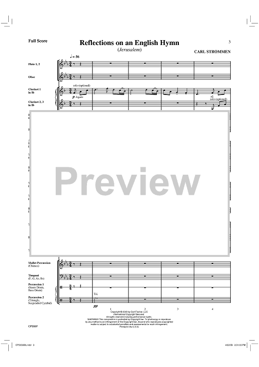 Digital Sheet Music for Reflections on an English Hymn - Score by Carl Strommen scored for Concert Band; id:405930