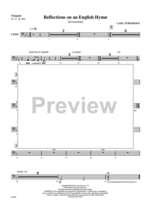 "Reflections on an English Hymn - Timpani" Sheet Music by Carl Strommen