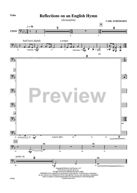 Digital Sheet Music for Reflections on an English Hymn - Tuba by Carl Strommen scored for Concert Band; id:405952