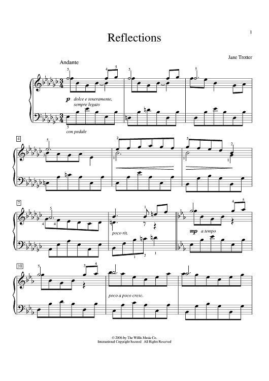 Digital Sheet Music for Reflections by Jane Trotter scored for Piano; id:391783