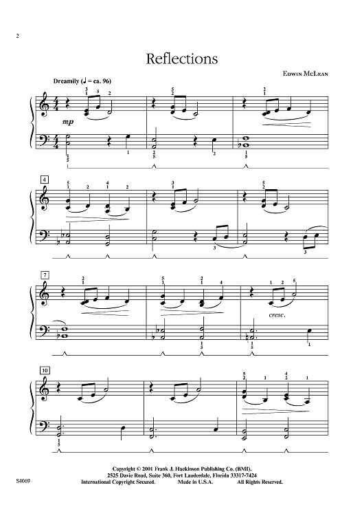 Reflections is a quiet, contemplative solo that is wonderfully choreographed with root-position chords and great voice-leading. A perfect summer solo.