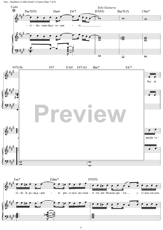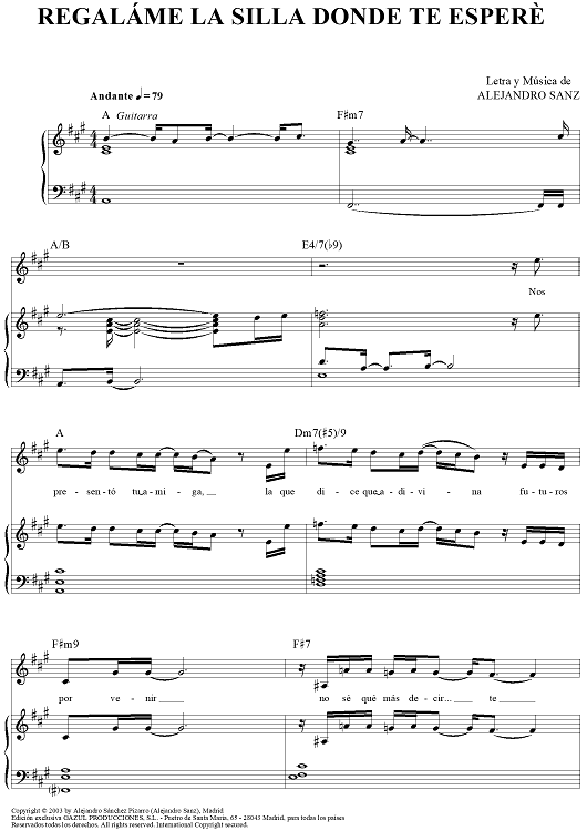 "Regaláme La Silla Donde Te Esperé" Sheet Music by Alejandro Sanz