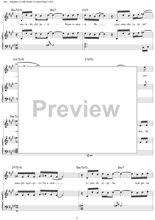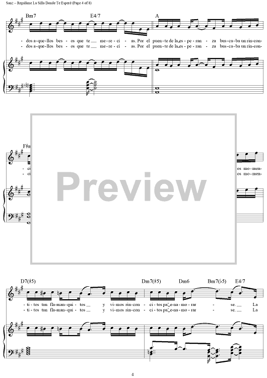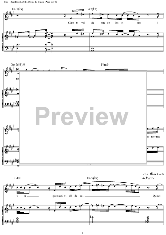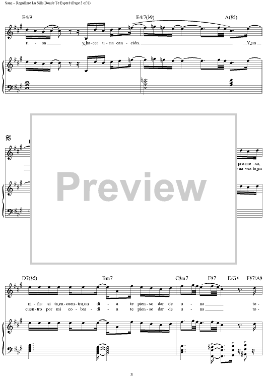 Digital Sheet Music for Regaláme La Silla Donde Te Esperé by Alejandro Sanz scored for Piano/Vocal/Chords; id:445585