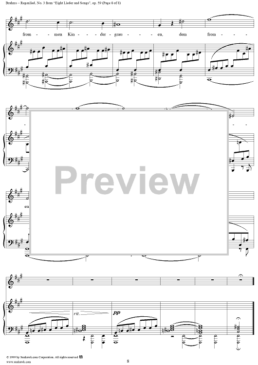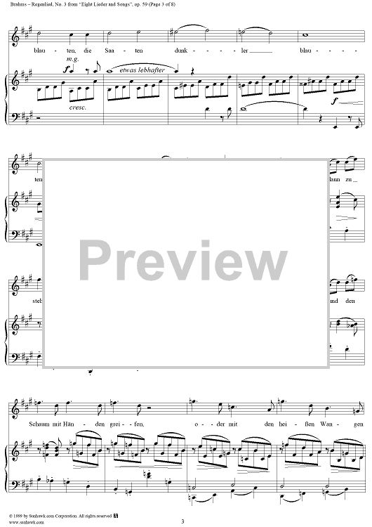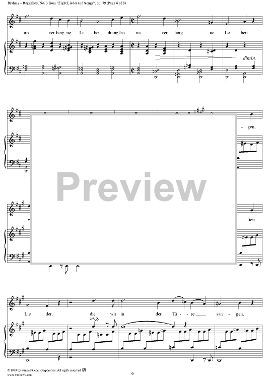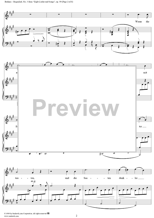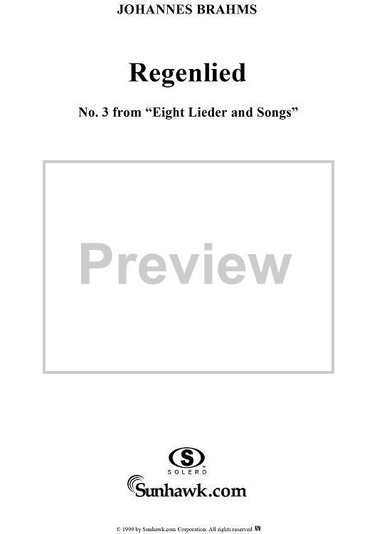 Digital Sheet Music for Regenlied - No. 3 from "Eight Lieder and Songs" Op. 59 by Johannes Brahms, Groth scored for Voice/Piano; id:274388