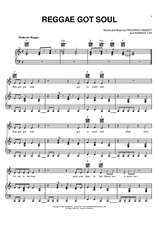 Digital Sheet Music for Reggae Got Soul by 311, Frederick Hibbert, Warrick Lyn, Toots & The Maytals scored for Piano/Vocal/Chords; id:401589