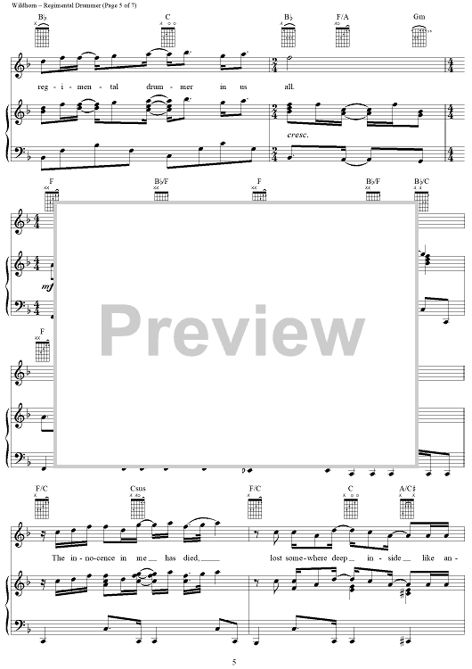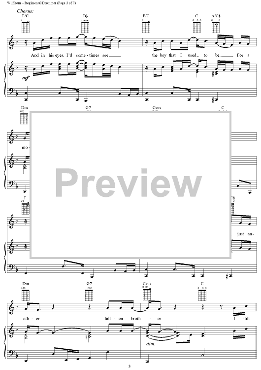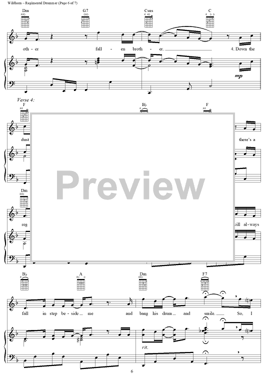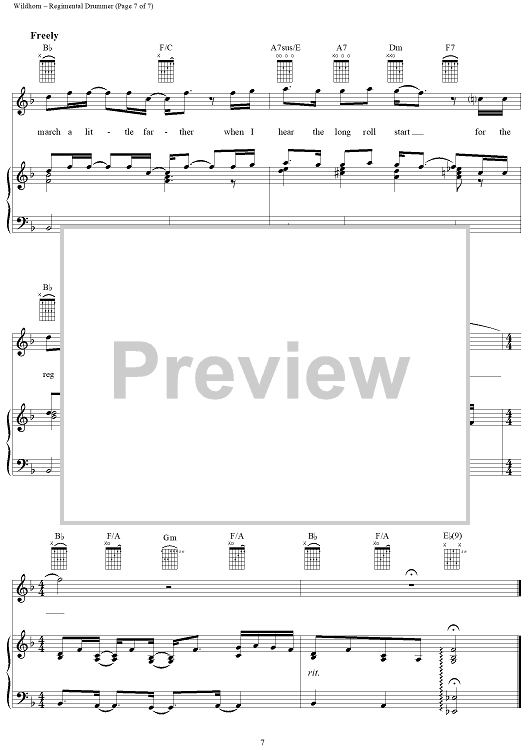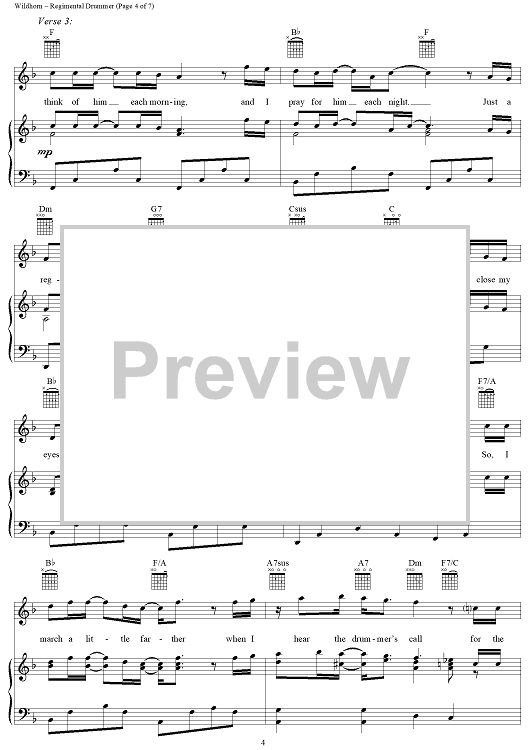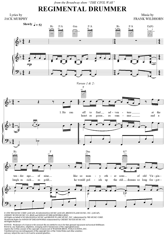Digital Sheet Music for Regimental Drummer by Frank Wildhorn, Jack Murphy, Michael English scored for Piano/Vocal/Chords; id:113782