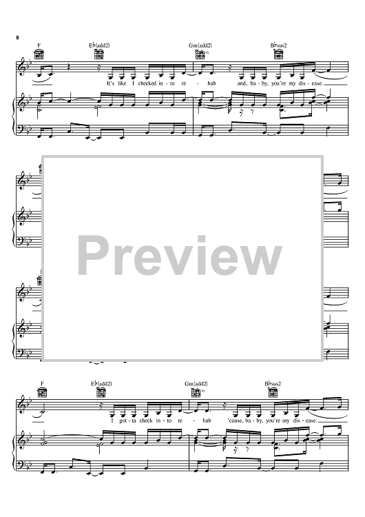 Digital Sheet Music for Rehab by Timothy Mosley, Rihanna, Hannon Lane, Justin Timberlake scored for Piano/Vocal/Chords; id:402841