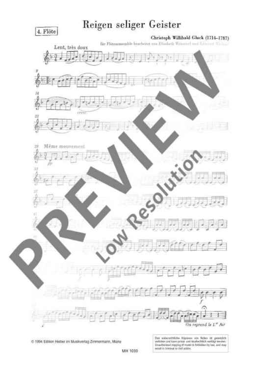 Digital Sheet Music for Reigen seliger Geister - Score and Parts by Christoph Willibald Glück, Elisabeth Weinzierl, Edmund Waechter scored for 6 Flutes Or Flute Orchester; id:494128