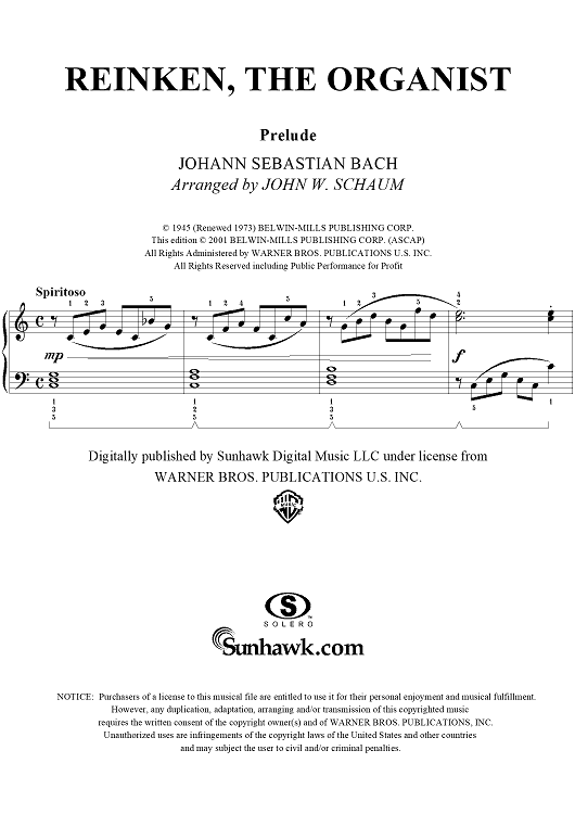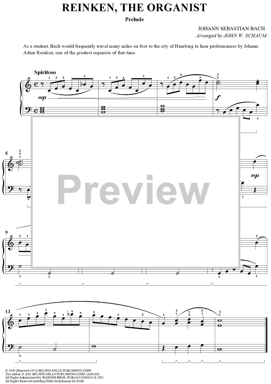 Digital Sheet Music for Reinken, the Organist (Prelude) by John W. Schaum, Johann Sebastian Bach scored for Piano Solo; id:293073