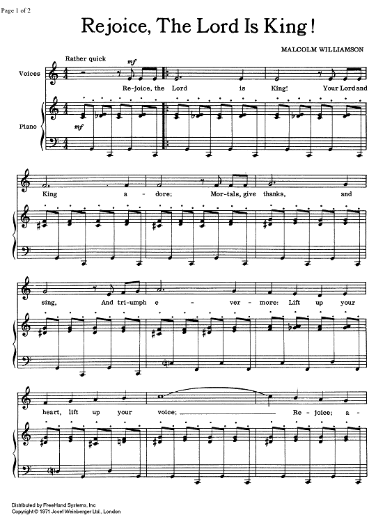 "Rejoice, The Lord Is King" Sheet Music by Malcolm Williamson