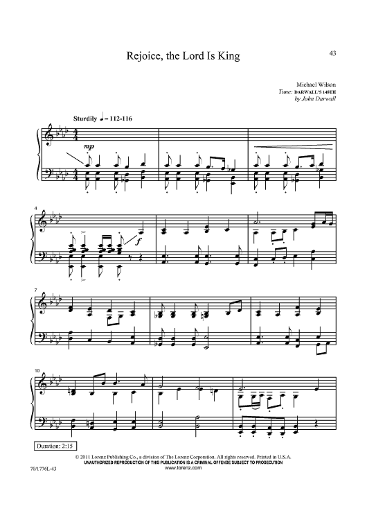 Digital Sheet Music for Rejoice, the Lord Is King by John Darwall, Michael Wilson scored for Piano Solo; id:433657