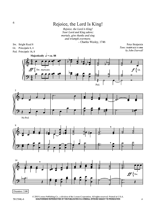 Digital Sheet Music for Rejoice, the Lord Is King! by John Darwall, Peter Benjamin scored for Organ Solo; id:434084