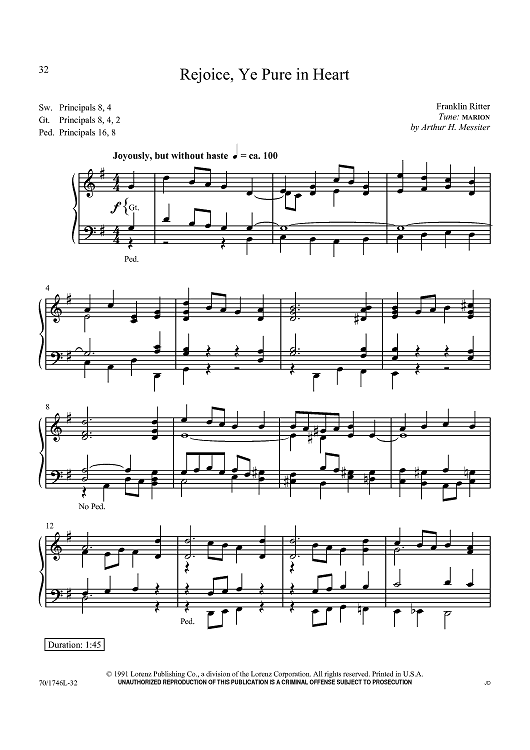 Digital Sheet Music for Rejoice, Ye Pure in Heart by , Arthur Henry Messiter, Franklin Ritter scored for Organ Solo; id:434731