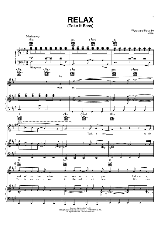 Digital Sheet Music for Relax (Take It Easy) by Mika scored for Piano/Vocal/Chords; id:397647