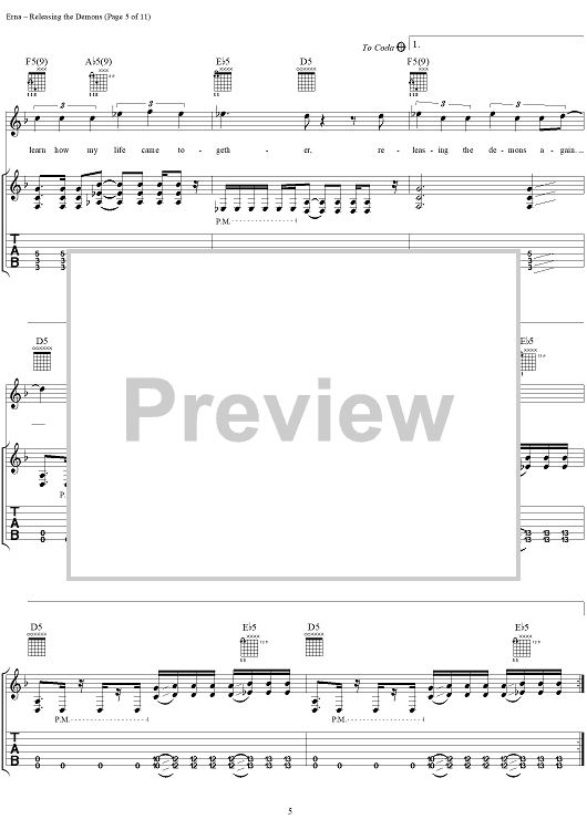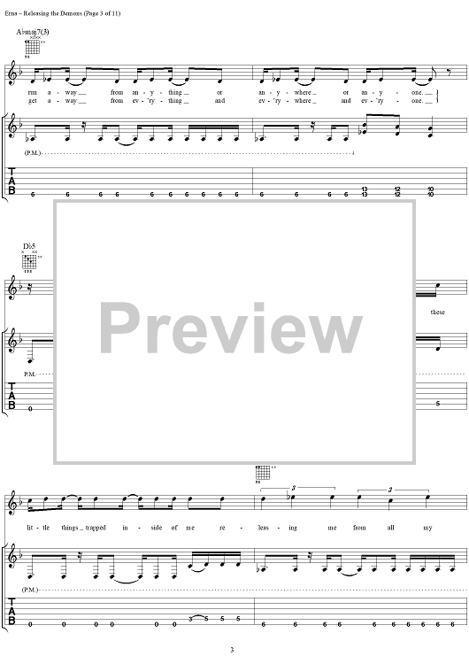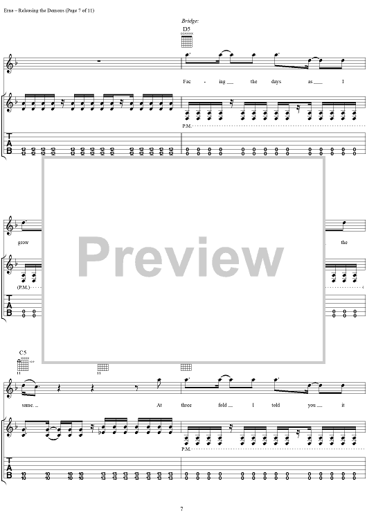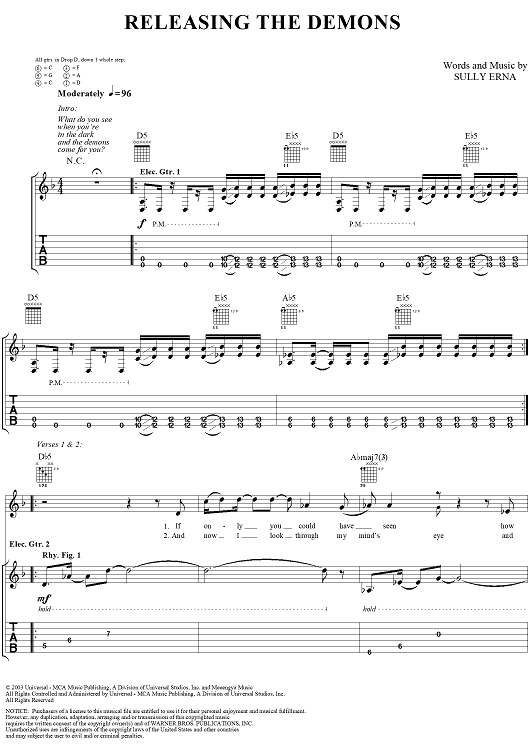 Digital Sheet Music for Releasing the Demons by Godsmack scored for Guitar Tab/Vocal; id:297706