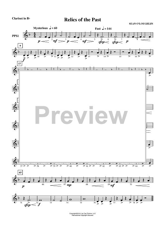 Digital Sheet Music for Relics of the Past - Clarinet in Bb by Sean O'Loughlin scored for Concert Band; id:420549