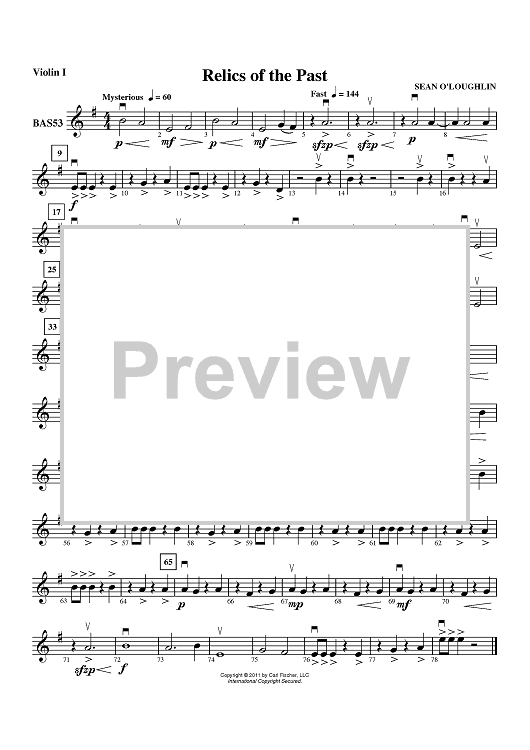 "Relics of the Past - Violin 1" Sheet Music by Sean O'Loughlin