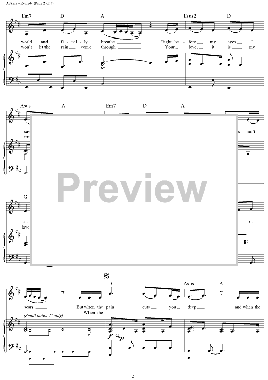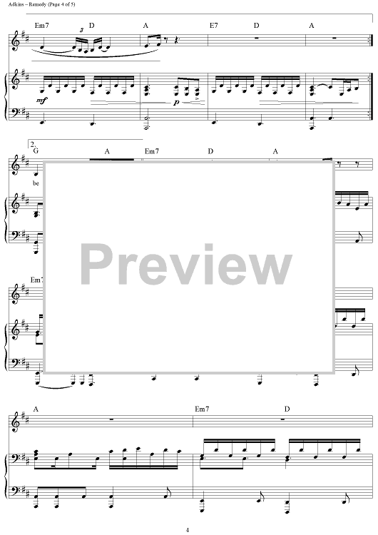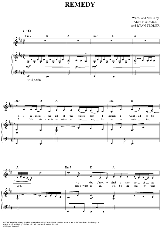 Digital Sheet Music for Remedy by Ryan Tedder, Adele Adkins, Adele scored for Piano/Vocal/Chords; id:456302