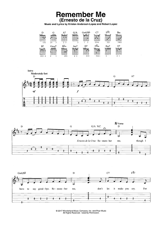 Digital Sheet Music for Remember Me (Ernesto de la Cruz) from COCO by Robert Lopez, Kristen Anderson-Lopez scored for Easy Guitar Tab/Vocal; id:466196