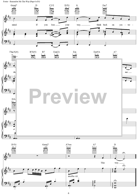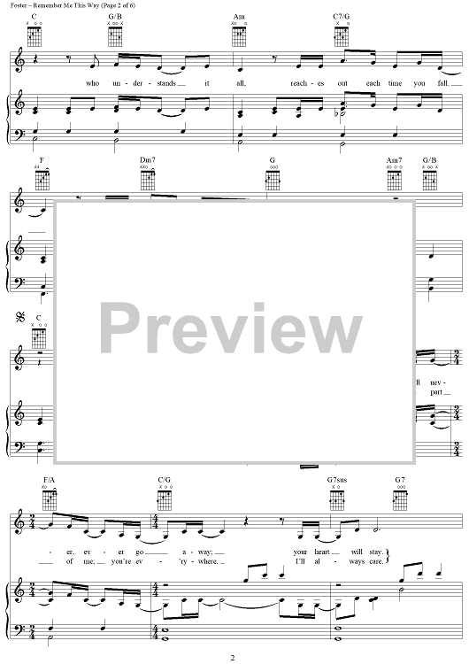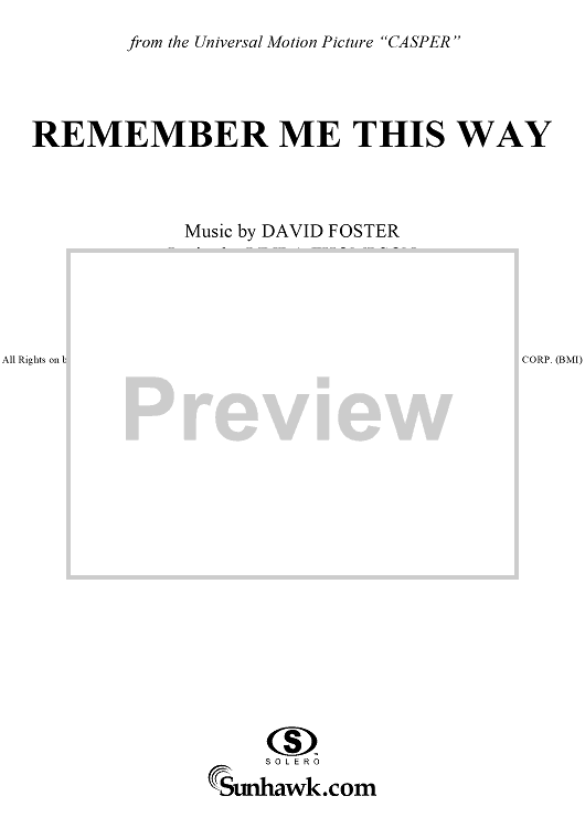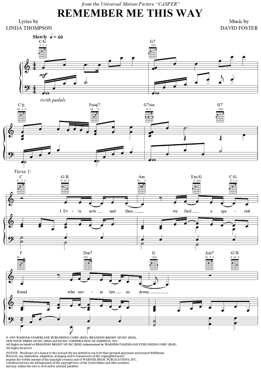 Digital Sheet Music for Remember Me This Way by Linda Thompson, David Foster scored for Piano/Vocal/Chords; id:269984