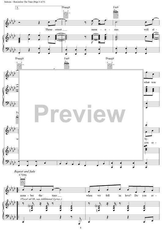 Digital Sheet Music for Remember The Time by Michael Jackson, Teddy Riley, Bernard Belle scored for Piano/Vocal/Chords; id:265356