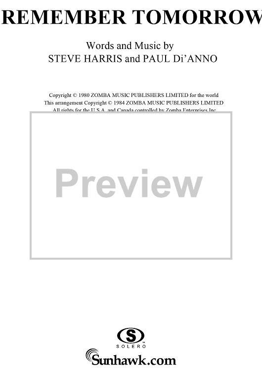 "Remember Tomorrow" Sheet Music by Iron Maiden