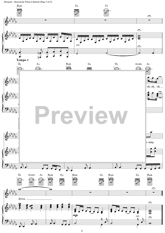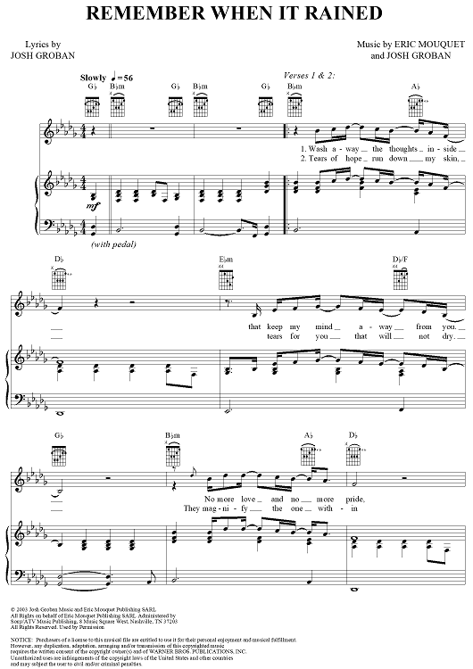Digital Sheet Music for Remember When It Rained by Josh Groban, Eric Mouquet scored for Piano/Vocal/Chords; id:307430