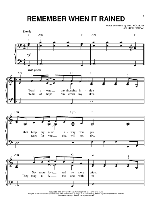 Digital Sheet Music for Remember When It Rained by Josh Groban, Eric Mouquet scored for Easy Piano; id:397851