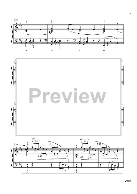 An uplifting piece, rich in harmonic color with an expressive melody. Features hand-crossings and an arpeggiated accompaniment.
