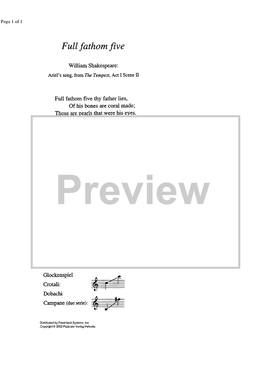 Digital Sheet Music for Remembering Martha (Wliilam Shakespeare: Full Fathom Five) - Lyrics by , Pavle Merkù scored for Soprano/Choir/Percussion; id:351480